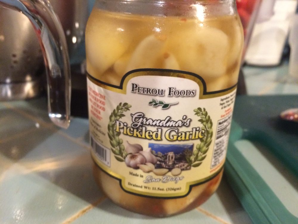 The recipe I followed came from the Make the Bread Buy the Butter book.  The recipe called for Fresno peppers, but I figure any peppers will work well for hot sauce and each kind will give it’s own unique taste and heat.  Instead of fresh garlic, I used pickled garlic from Petrou Foods. They sell at a local farmers market.  The pickled garlic is a bit sweet and is good enough to eat plain.  I also added dried cilantro for flavor.