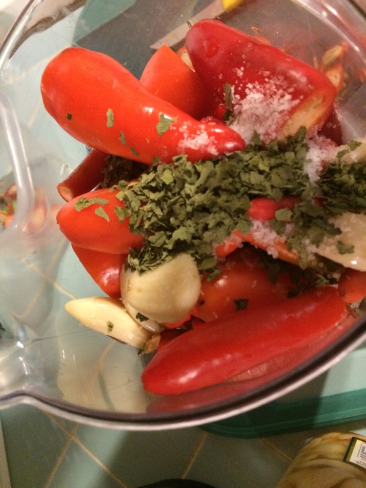 I ran the peppers and other ingredients through the blender until they reached the right consistency.  I then poured the sauce into jars and put it into a cabinet to sit for 6 weeks.