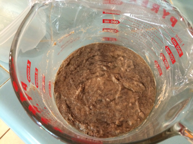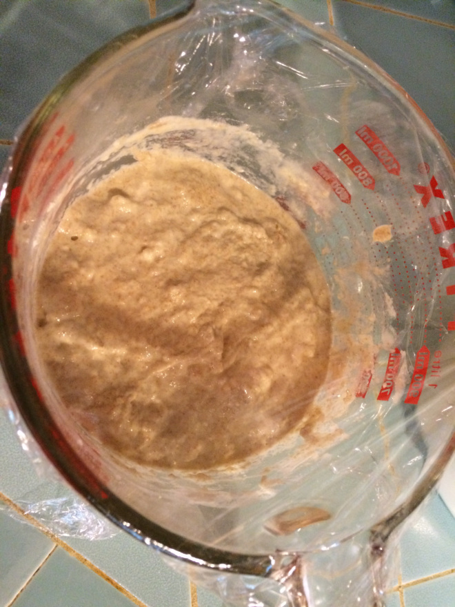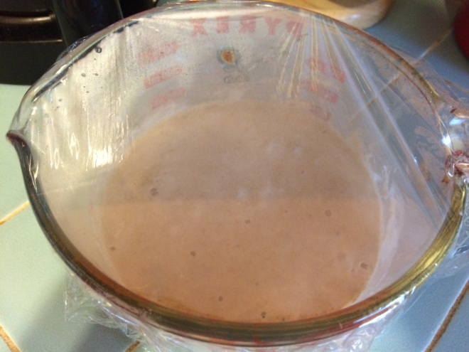 This was probably the easiest thing I did yesterday. I took out half of the starter and then added in 1 cup of unbleached all-purpose flour and a little more than 1/2 cup of water. I stirred it up until there was no dry flour left. Then set it back in its spot on the counter.