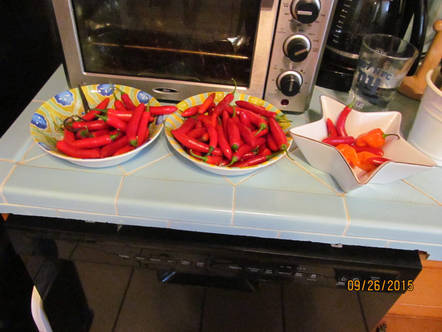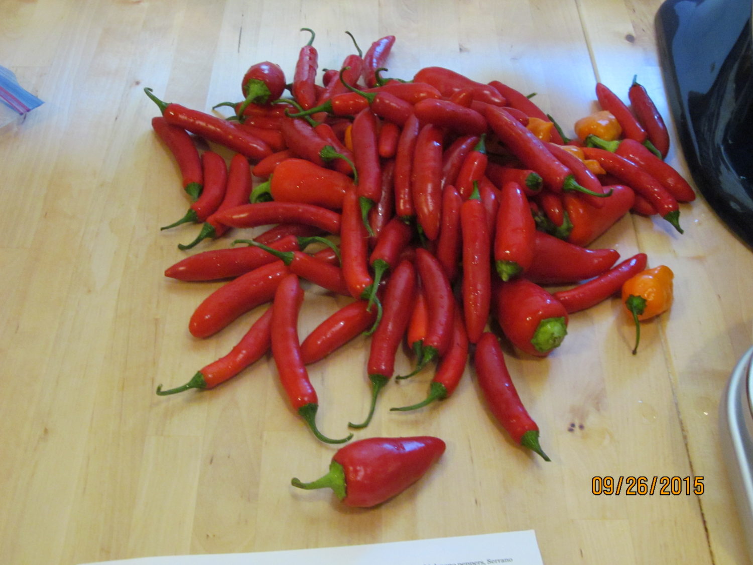 This is a few days late, but on Saturday we made spicy pickled peppers using the large amount of peppers that we have growing. Mostly, we used Serrano peppers because my 3 plants have gone mad. MAD I TELL YOU!