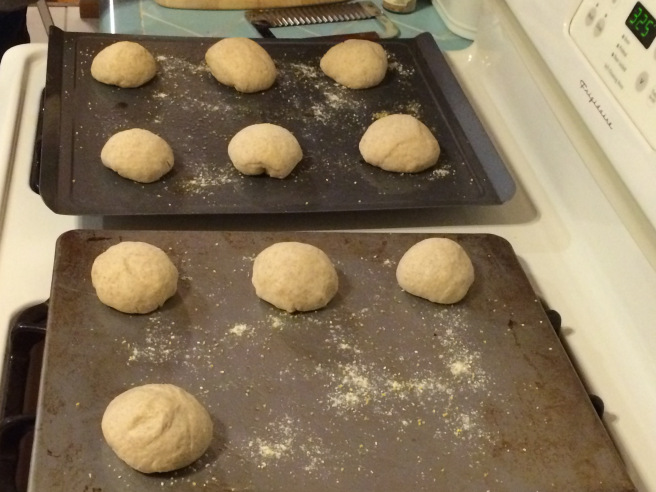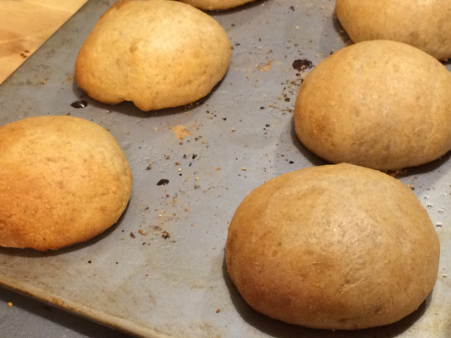 Yesterday, dinner was late again because I was making hamburger buns from scratch. I think if I had started the dough around 1 PM like I had been planning that I would have been okay, but no, I was a little bit scared of making burger buns from scratch and was actually trying to think of something else to make for dinner! In the end, I started my dough around 2 to 3 PM. I will say that making hamburger buns from scratch isn’t easy! I used a recipe from one of my newer cookbooks, Brown Eggs and Jam Jars: Buttermilk Oat Hamburger Buns. It uses some good for you ingredients: old-fashioned oats, whole wheat flour, honey. I think there were 3 times that I had to let it sit for around a total of 2 hours and 15 minutes of resting/proofing.