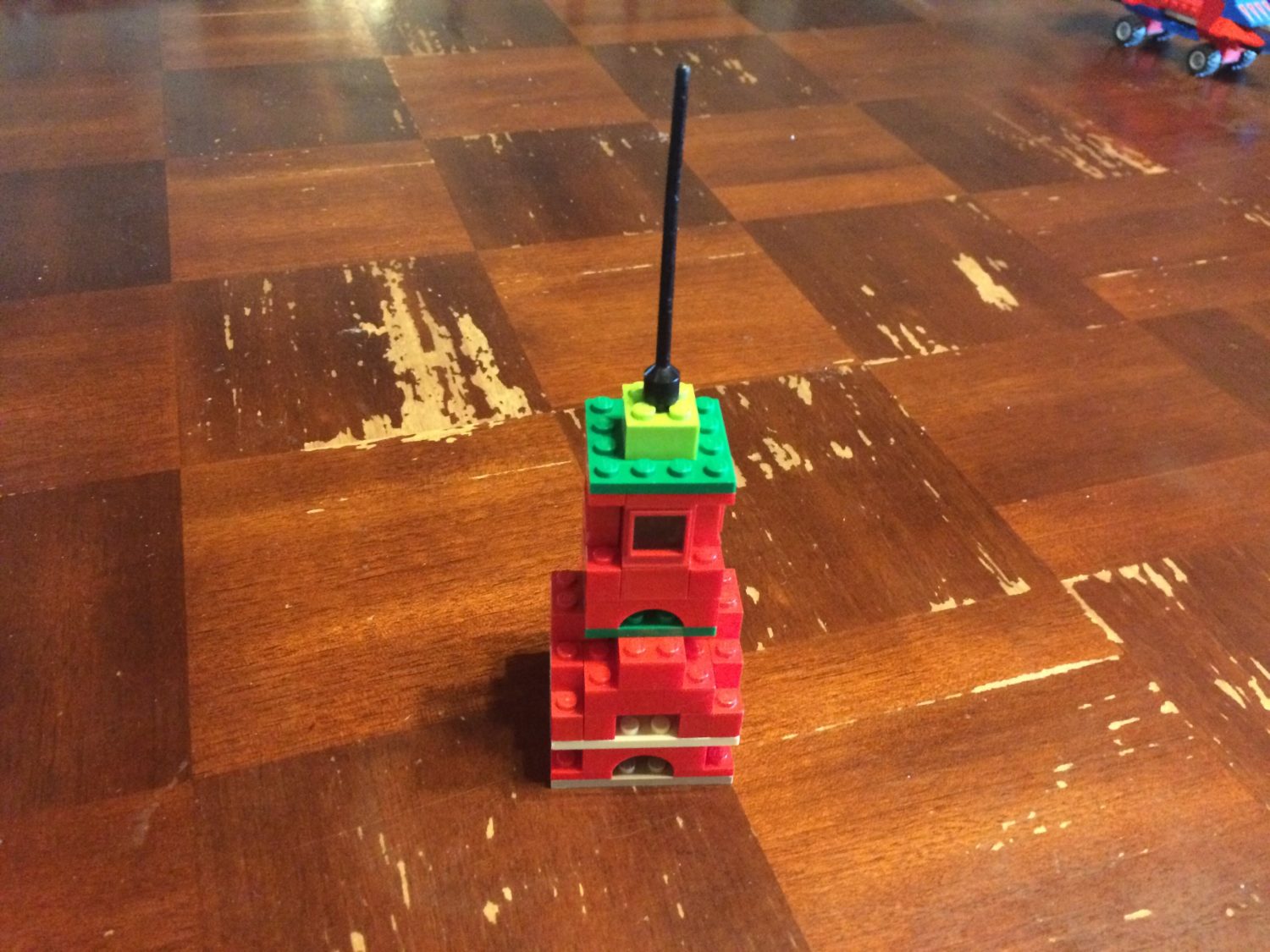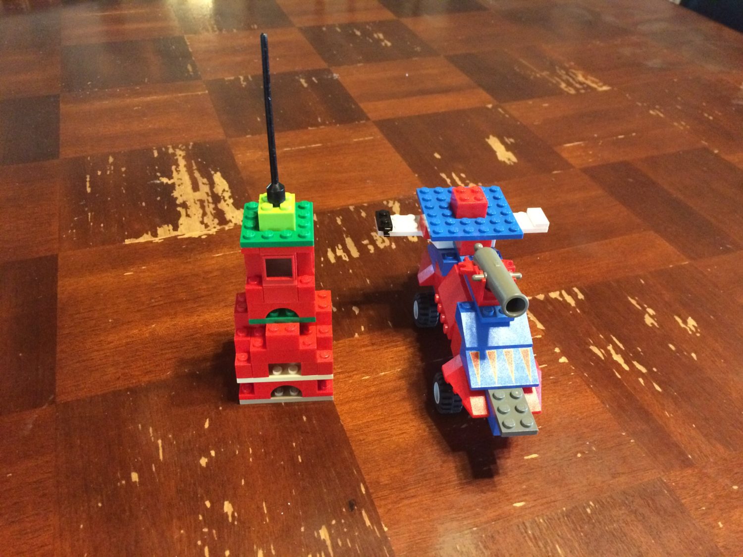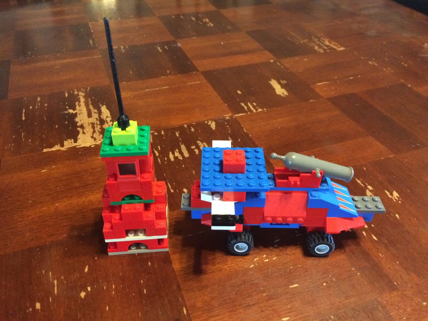 Our 8 year old’s tower seems more like a clock tower to me but he put a lot of effort and work into it. He wanted me to also take pictures of his cannon car with the tower.
