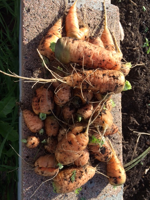 This afternoon I pulled up all the carrots and beets I had planted. The raised bed they were in had been dug up by an animal, my guess is an opossum or raccoon. I think the animal was looking for the beetle grubs that like to live in there. I am trying to get rid of the grubs, so I guess the critter is helping me somewhat. After I took out the plants, I dug up the bed some too and pulled out all the grubs I found. Hopefully, there are not many more left because I am going to put peppers in that bed and don’t want those dug up.