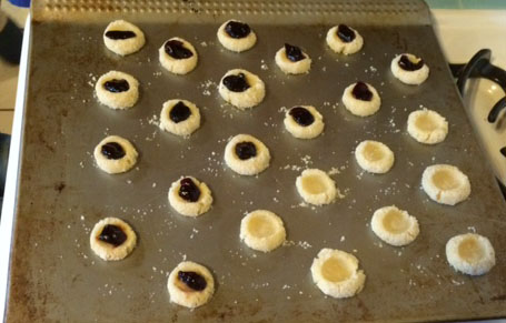 They used 3 kinds of jelly on the Polish tea cookies: grape, red raspberry, and lemon curd. All of the cookies turned out well and taste good.