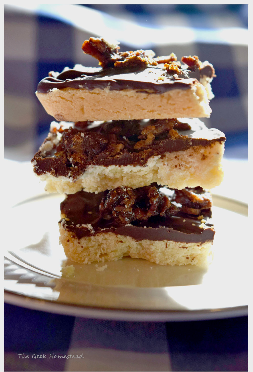 He found a recipe that used a box cookie mix as the base for bacon cookies, but we don’t want to use box mixes if we can help it and we didn’t have any anyway. I asked him what he thought of using shortbread as the base. Josh LOVES shortbread, so he jumped on this idea right away.