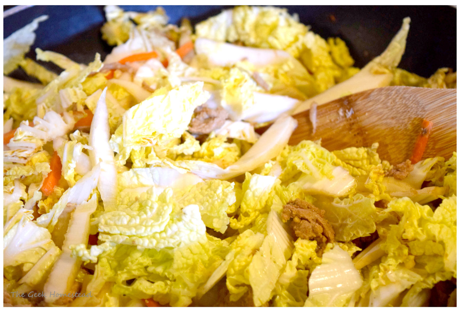 A bag of coleslaw mix can probably used as a substitute for the cabbage and carrots and would also be a faster alternative! I had bought a napa cabbage specifically for this recipe though, so I went ahead and used it.