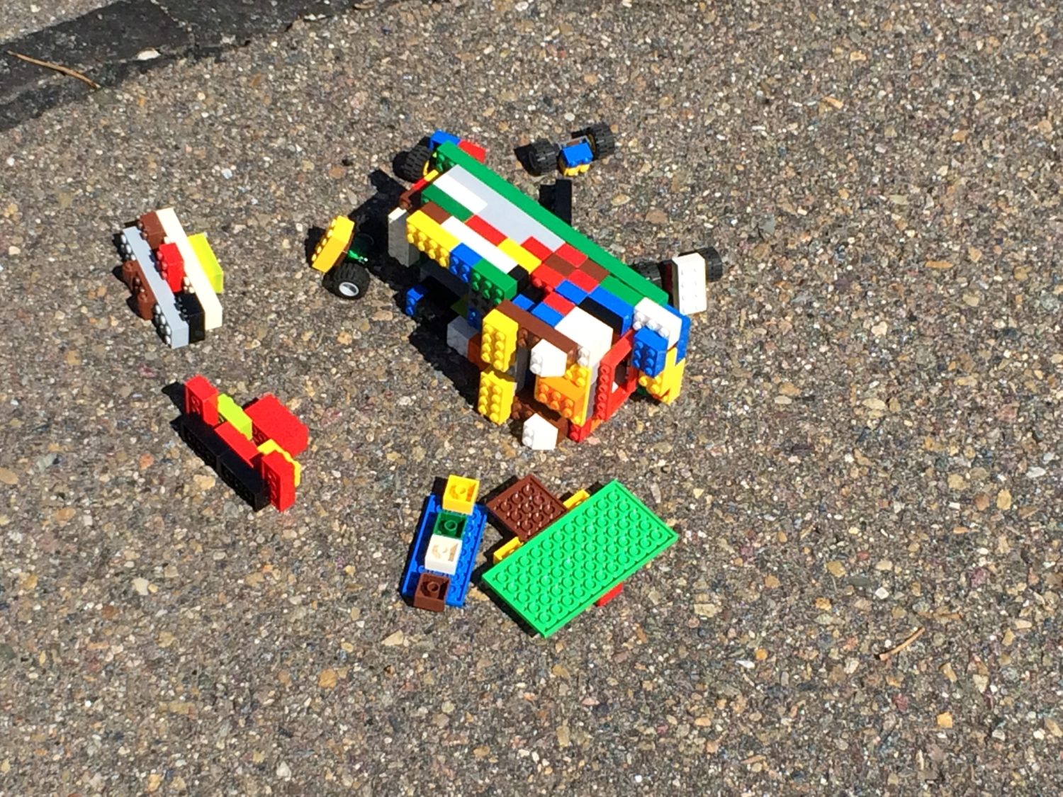 Our 12 year old came up with a car that had many pieces on it. I think all those pieces were to help protect the egg. The car ended up having even more tires once it made its way to the hill. He said they were training wheels. His car lost pieces on its way down the hill, and ended up broken into many pieces.
