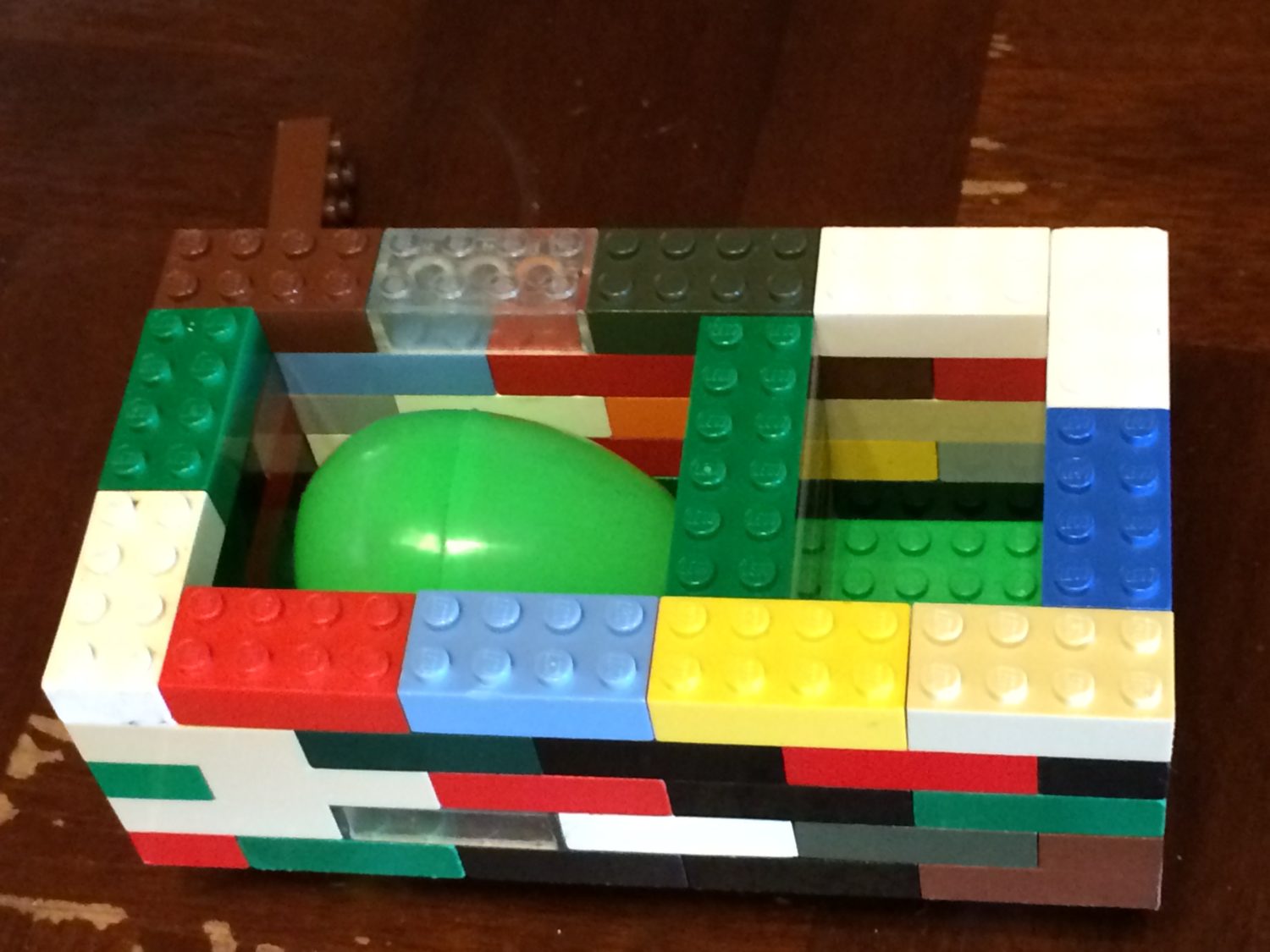 Our 8 year old built a car with a compartment on the inside. The egg fit perfectly into the compartment and protected the egg. His egg also did not break.