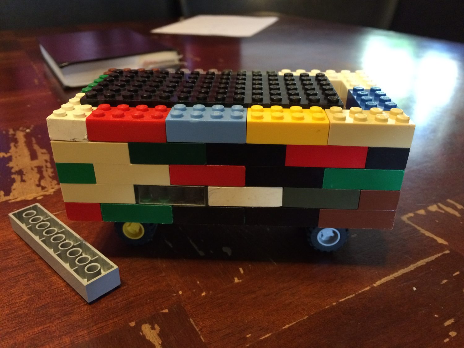 3- You must use 4 wheels (my kids asked if they could just slide it down without wheels. It doesn’t flip over as easily. But nope, you NEED 4 wheels, at least, or else it doesn’t qualify as a “car”. No boat races!)