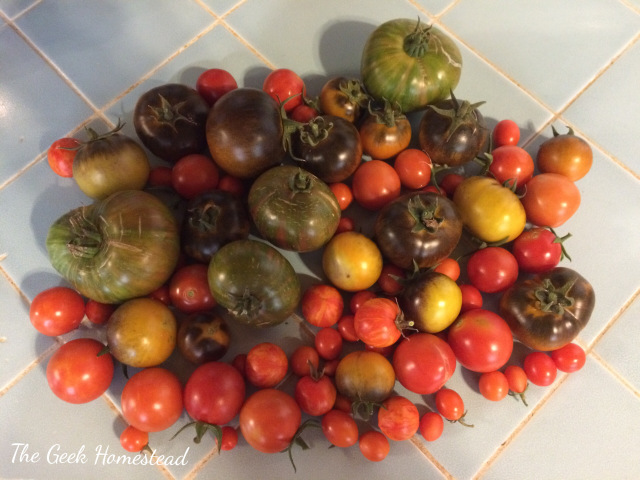 Post author:Joshua Post published:August 24, 2016 Post category:Around the Yard Post comments:0 Comments Tags: garden, gardening, tomatoes Read more articles Previous PostFirst Almonds Next PostWordless Wednesday: Getting Ready For Fall Planting. You Might Also Like This Week on the Homestead 6/21 – 6/27/2020 June 28, 2020 We Acquired a Chicken February 13, 2018 Night-blooming Cereus: 2021 Bloom Night #1 June 30, 2021 Poppies in the Yard March 23, 2017 This Week on the Homestead 4/26/2020 – 5/2/2020 May 3, 2020 This Post Has 0 Comments nannygrannie September 27, 2016 Reply Wow! I assume yours are supposed to be that colour? mine are that colour but seem to be rotting!!! Joshua September 27, 2016 Reply Oh yes that is the correct color. The purple/orange ones are Wagner Blue Green and are bright green on the inside. This was my first year growing them, and they are one of the best tomatoes I have ever eaten. landing pilot September 29, 2016 Reply Gorgeous heirlooms! Jena The Landing Pilot https://landingpilot.wordpress.com/ Leave a Reply Cancel reply Recipe Rating Recipe Rating CommentEnter your name or username to comment Enter your email address to comment Enter your website URL (optional) Save my name, email, and website in this browser for the next time I comment.
