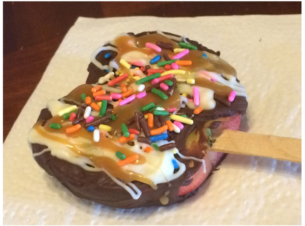 Delish recipes will often show up on my Facebook feed. A recipe for Chocolate Apple Pops popped up and a friend asked me if I could make them. I said I probably could. Now, before I make them for my friend, I wanted to make sure I could actually make them! So I did a test run of the recipe on the Delish website.