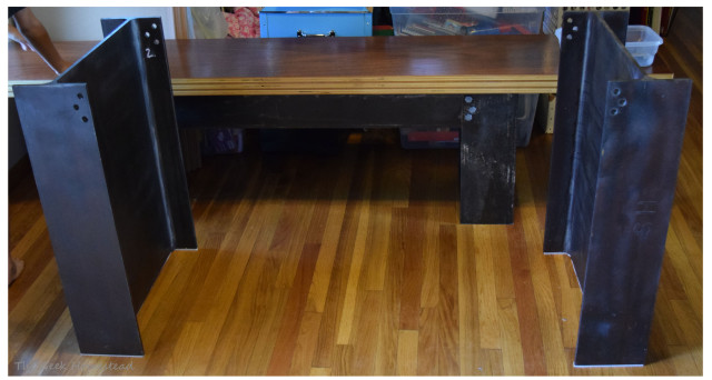 As you can see from the dates in the pictures, I was able to get the legs completed over a year ago.  That is the point I ran into some difficulties.  I bought reclaimed wood to build the table top, but the wood wasn’t level and was more difficult to work with then I had thought it would be.  I was able to get the bench top put together, but was never able to make the tabletop work.  Periodically, I would try different ideas, but none of them worked out.