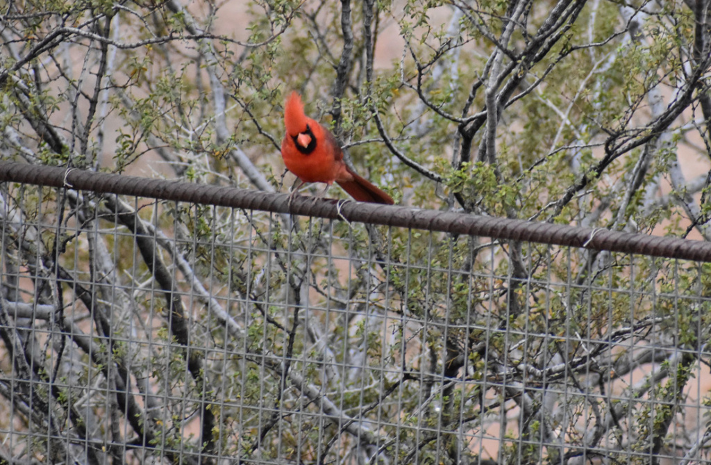 The prior owners had a bird feeder and a platform for a quail block. This week I finally put food there to see if we could attract any birds.
