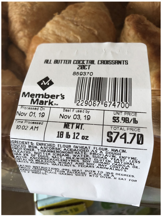 I just returned a pack of very expensive croissants to Sam’s Club. Since we live pretty far from it, it was a 50 mile round trip. Was it worth it? Yes. There’s no way I’m paying Sam’s Club $74.70 for a package of 20 croissants. I got a refund and an apology but that was it. What’s funny is that this was my first day as a Sam’s Club member. Of course I had to pick up the package with an incorrect label!