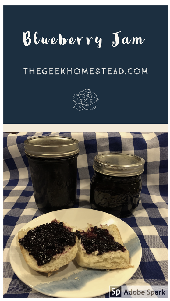 One of our local grocery stores had blueberries on sale for $.97 for 6 ounces. I was given the instructions to buy blueberries and make a batch of jam with them.