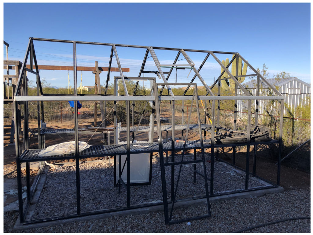 Lynn and the kids were out of town so I decided to work on our greenhouse. We inherited a decrepit greenhouse when we bought our house. The frame is in good condition, and is bolted to a cement foundation. All the plastic panels were broken though. We had a couple of hail storms that broke them even worse.