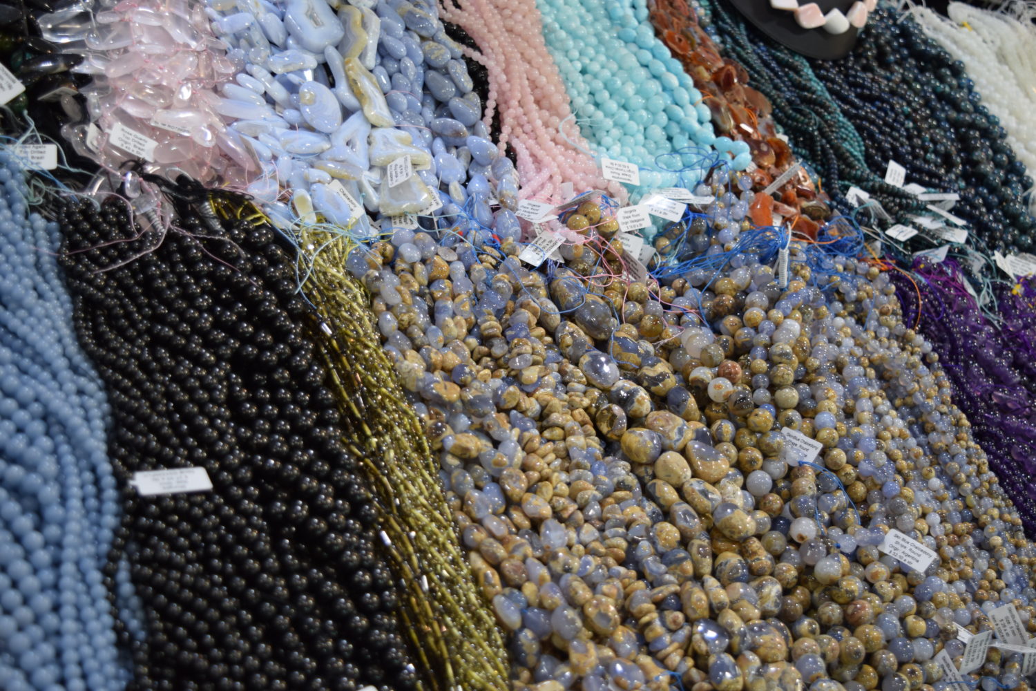 Once we got into the main tent, we barely made it in the door before Josh was drawn to a bargain: Strands of loose beads and necklaces for $1.50 each if you bought 10 strands. Josh has been wanting to get back into jewelry-making so he picked out some beads that would work well with his industrial style.