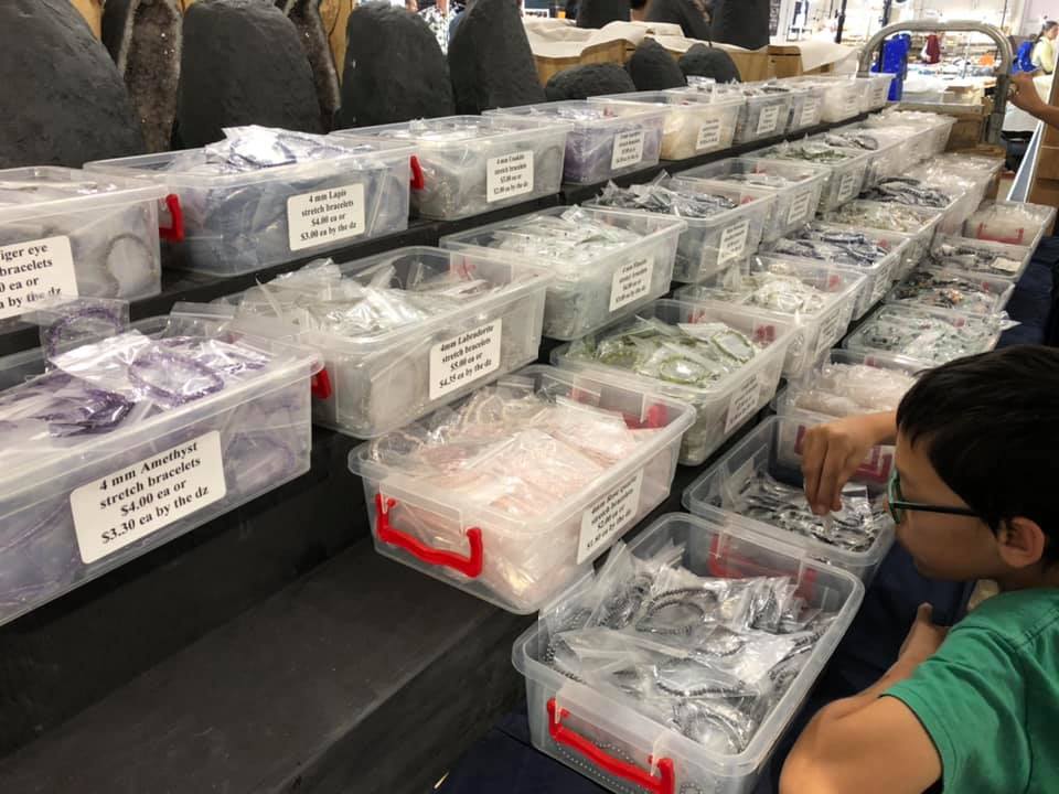 Each of our kids except Corran had something in particular they were looking for. So it was a little like a treasure hunt for them! Matthias was looking for a tiger’s eye sphere and when he saw some bismuth in one part of the tent, he wanted a piece to take home. In his case, he was looking for a good price. He found a sphere for $10 (he had seen one elsewhere in the tent for $15) and then he saw a piece of bismuth that he was happy with that was $3.