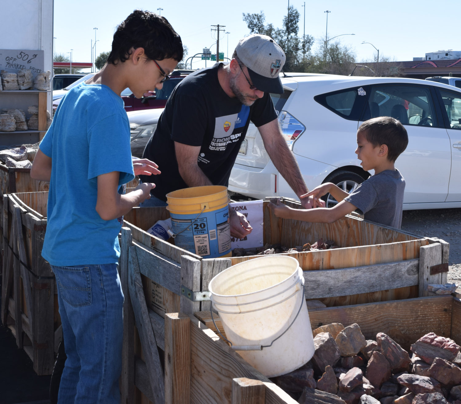We have been looking forward to the annual Tucson Gem Show ever since we moved here from California! Our family enjoys looking at rocks, which you can read about in this post about our 2015 visit to the Petrified Forest. In particular, our second oldest is a rock hound and knows quite a bit about rocks, gems, and minerals since he has some books all about them. It would not surprise me at all if he grows up to be a geologist.