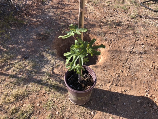 Our fig tree also came in that we bought from our power company. The boys were able to dig a hole for it, but the tree still needs to be planted. We are hoping it will grow quickly to be shade for the chicken coop. In the meantime, we will probably need to put up some sailcloth this summer to shade the chicken coop instead.
