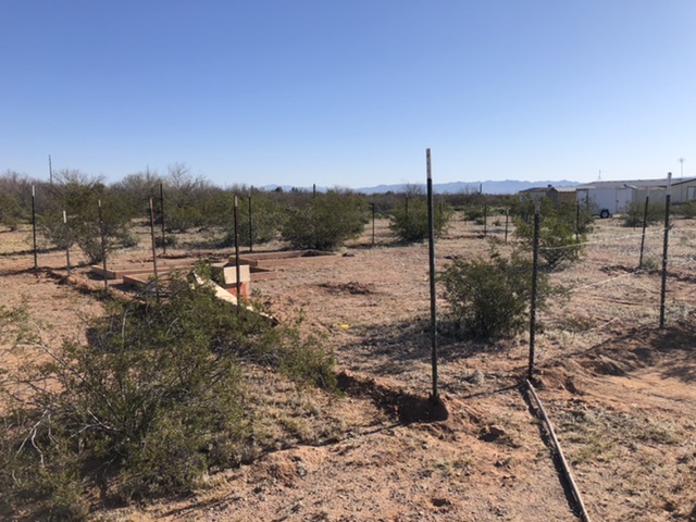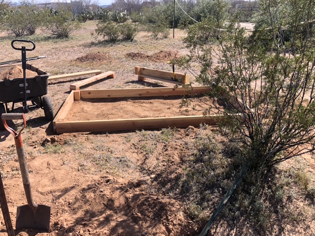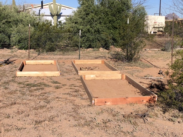 All the garden bed fencing is up. We have a lot of rabbits and other wildlife in the area that would love to get into a garden, so Josh and the boys put all the fencing up first. The garden beds are now ready to be filled with dirt. I think Josh will be going to pick up dirt tomorrow so that he can start planting. We are expecting only to be able to grow veggies in the garden until about June or July because of the heat here. Then, Josh plans to grow winter veggies starting in October or November.