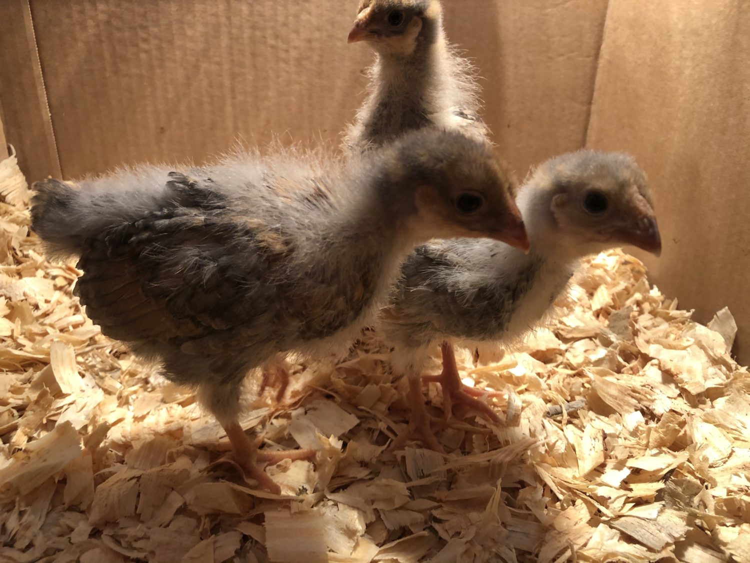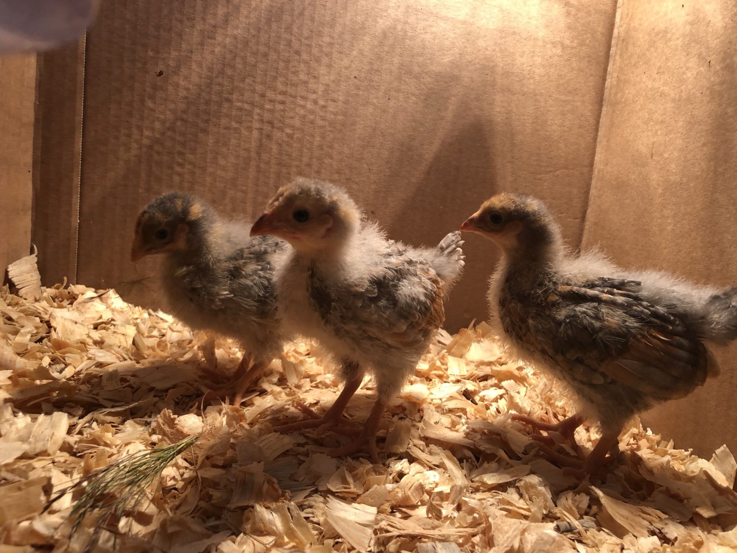 Our baby blue-laced red wyandottes are still in the house with us. Josh expanded their home to two boxes and it took them awhile to decide it was a safe box. These babies are growing in their feathers quickly and are starting to look a little bit scruffy. We can’t wait to see what their colors will be like once they are grown. They love being hand-fed and will go crazy if you feed them their favorite snack, Scratch and Peck organic starter.