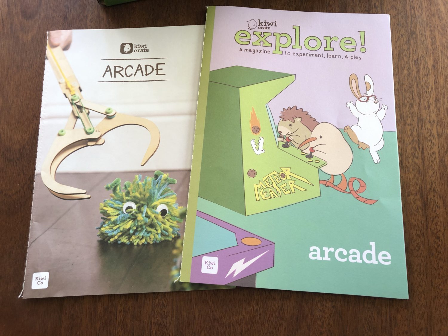 Here are pictures of the two books that came in the Arcade box. The explore! magazine has fun ideas for other projects or easy games that kids can play.