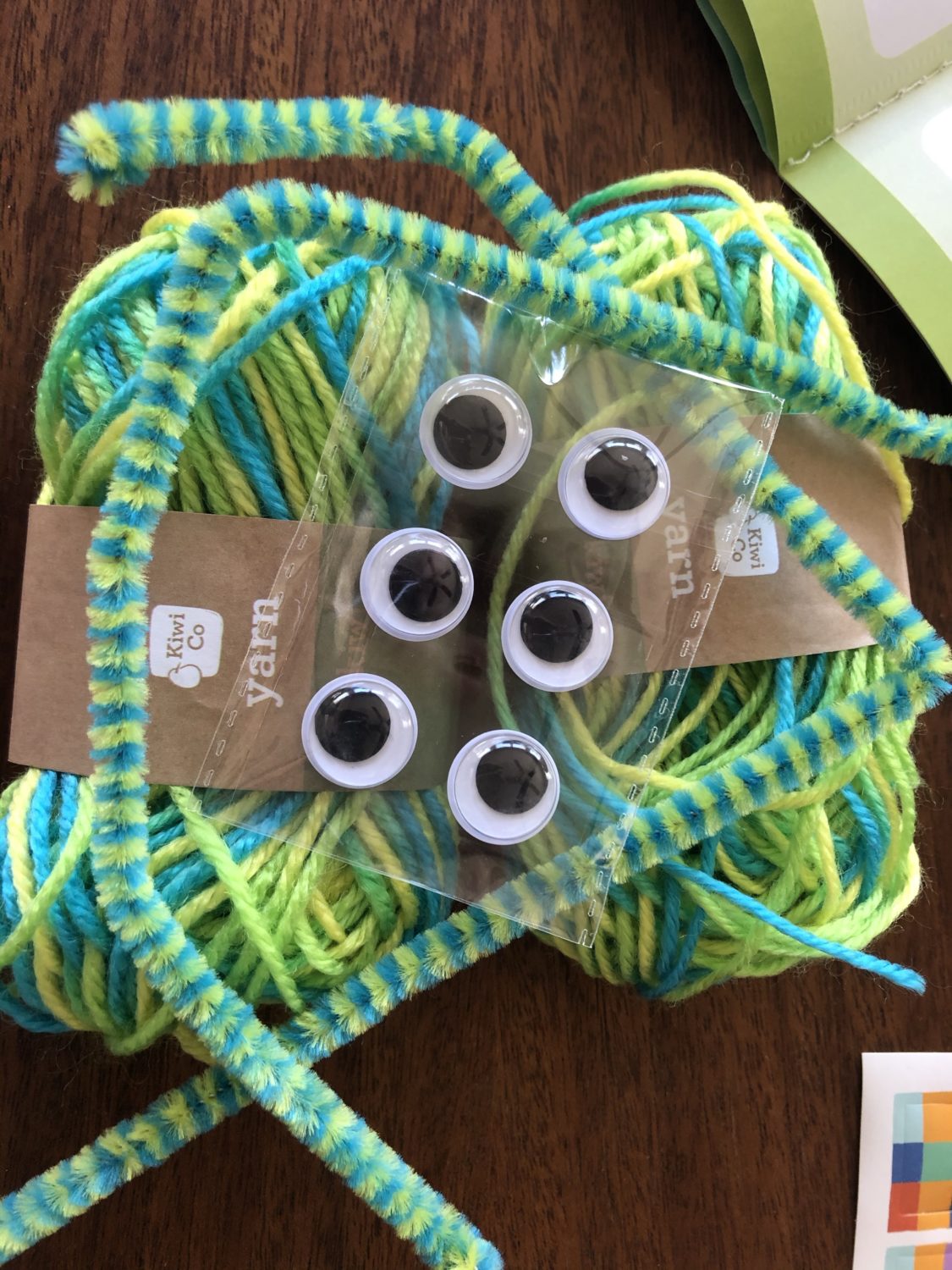 This was my favorite part of the Arcade box! The pom-pom creatures were so easy to make that I was even able to make an extra one from a pipe cleaner and yarn that I had in our craft supplies.