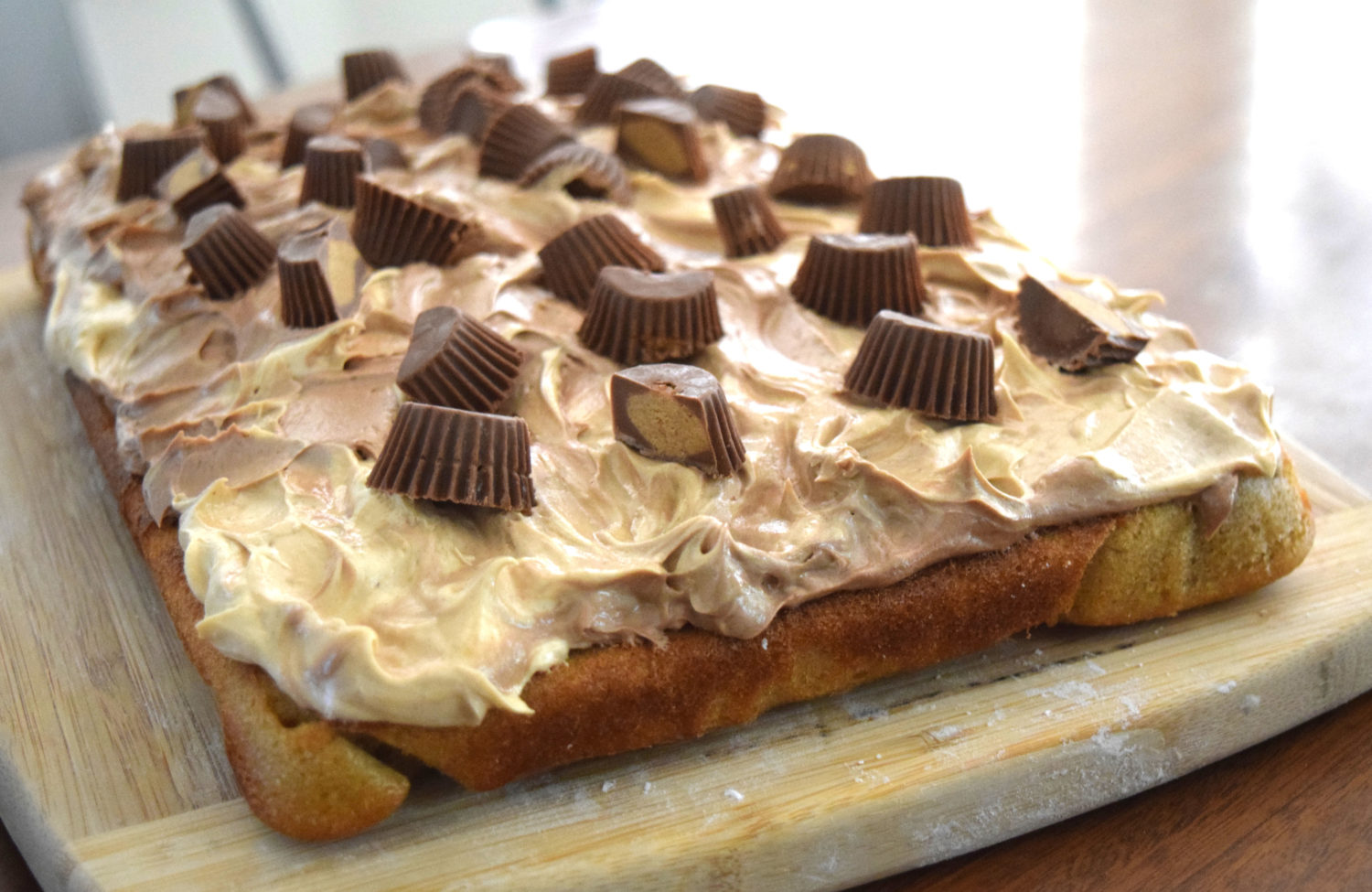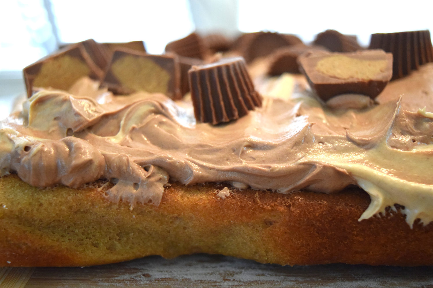 You can see the recipe I used here: Peanut Butter Sheet Cake with Chocolate Peanut Butter Frosting.