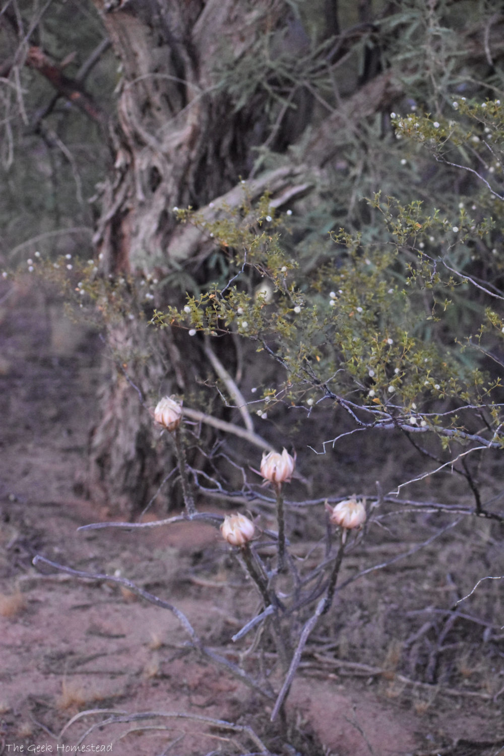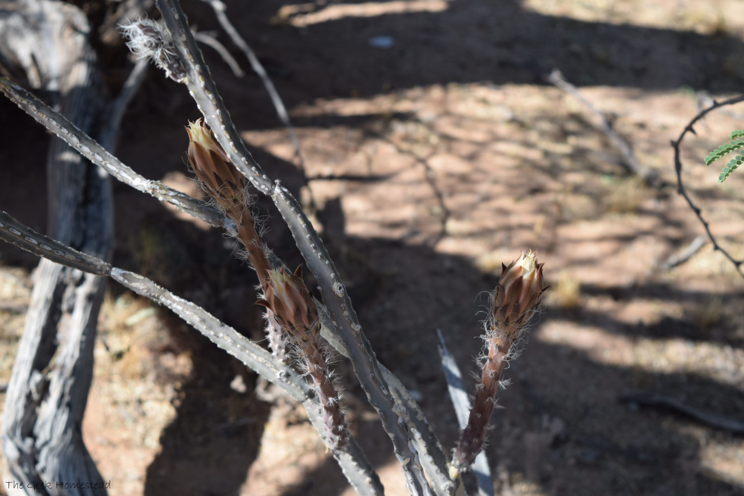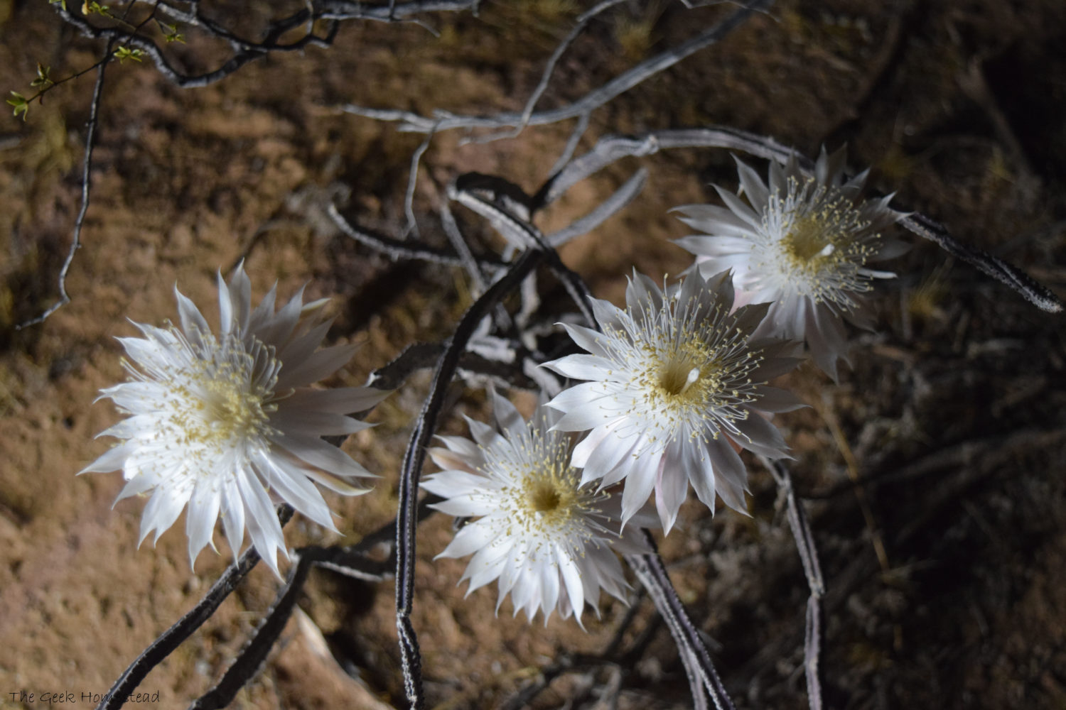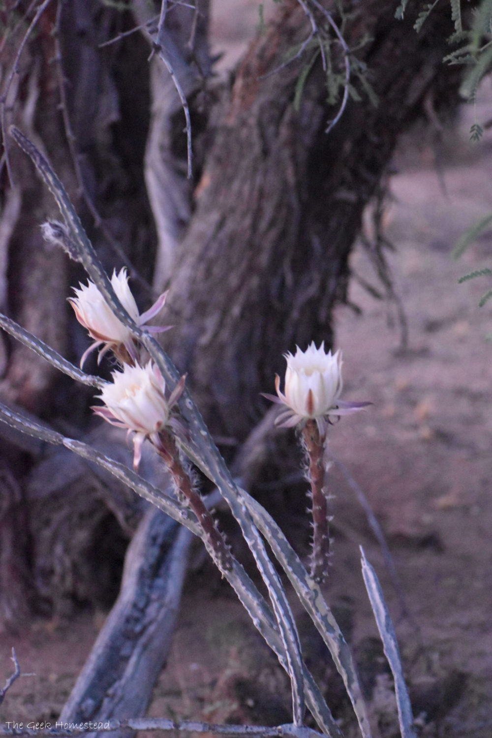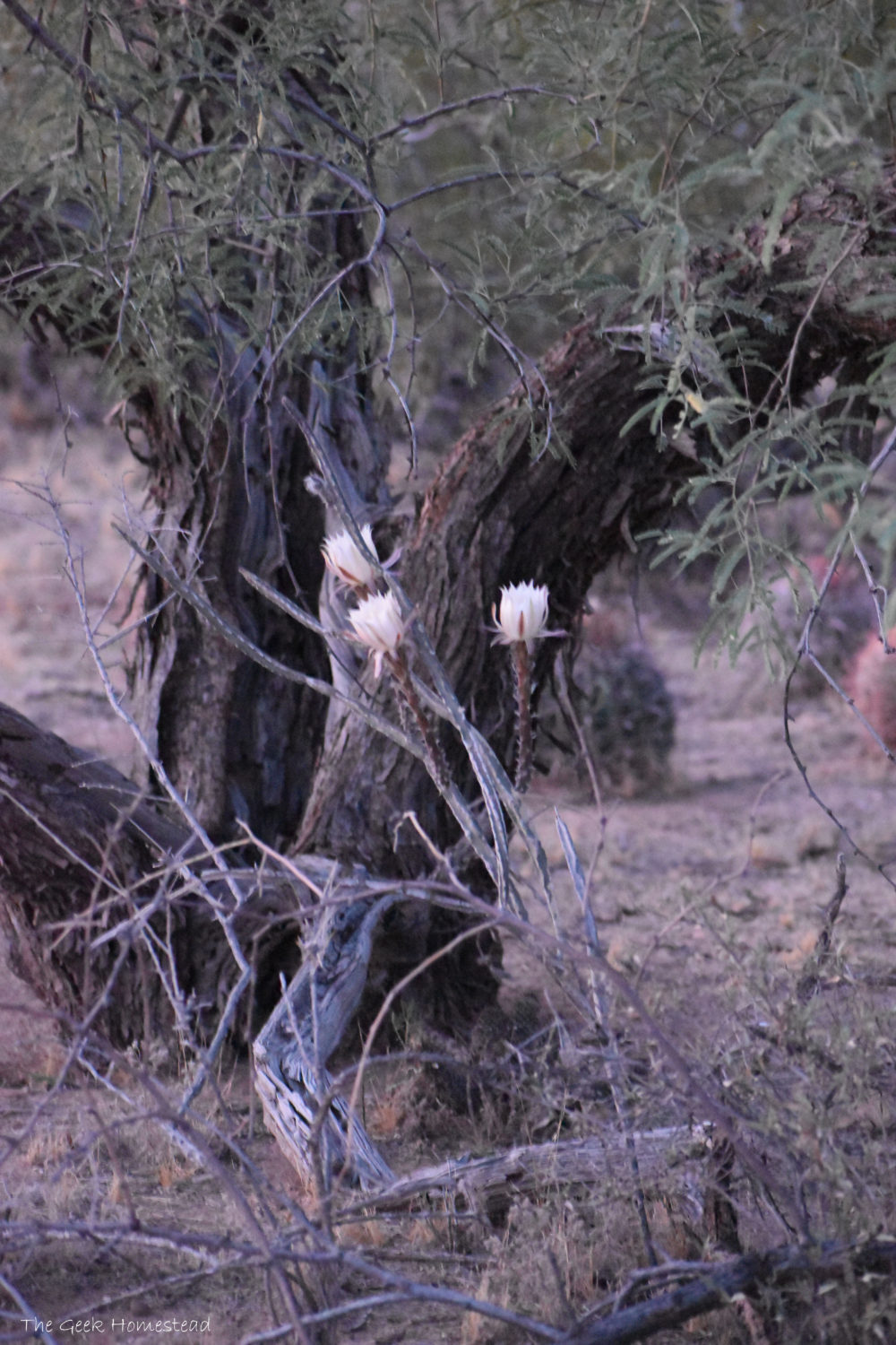 This night blooming cactus is by one of my favorite barrel cactus groupings. It’s also pretty close to the house so you don’t have to go far to see it. Let’s call it the Three Musketeers.
