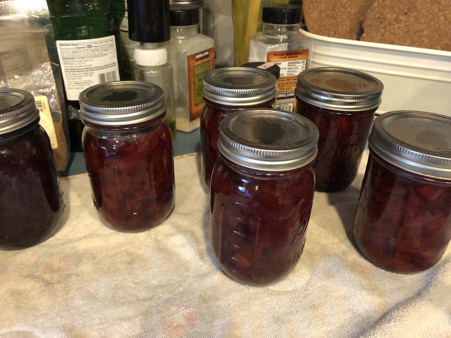 Remember that flat of strawberries? We definitely could not eat 8 pounds of strawberries so Josh canned 6 pounds of it into strawberry jam. He says he’s not too happy with how his jam turned out but he canned it anyway. I think it will taste great even if the jam was not as thick as he liked.