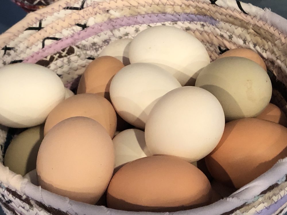 We are so happy to have fresh eggs every day now! Eight of our hens are laying. We love the colors of their eggs. We have three left to start laying, our Blue-Laced Red Wyandottes.