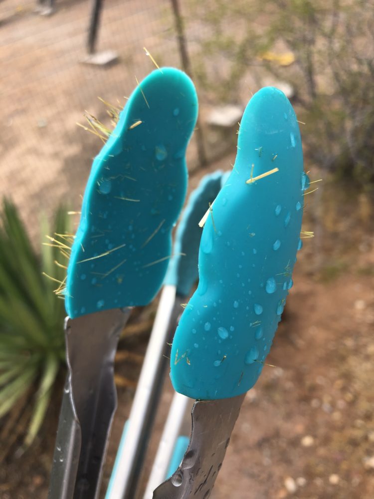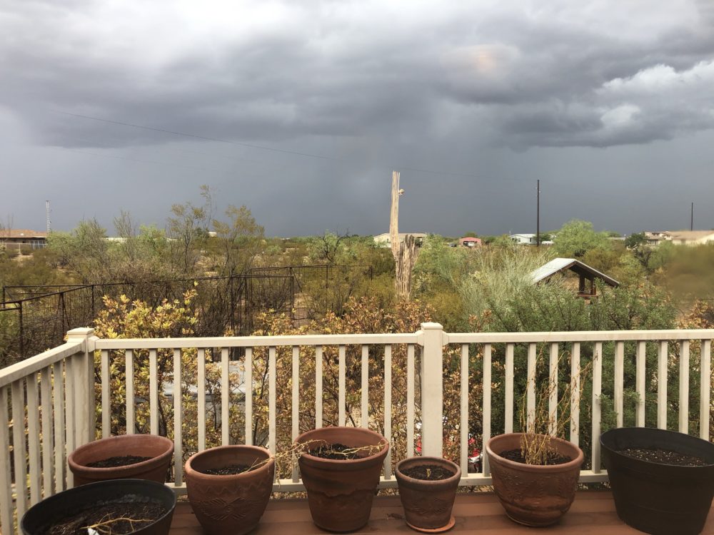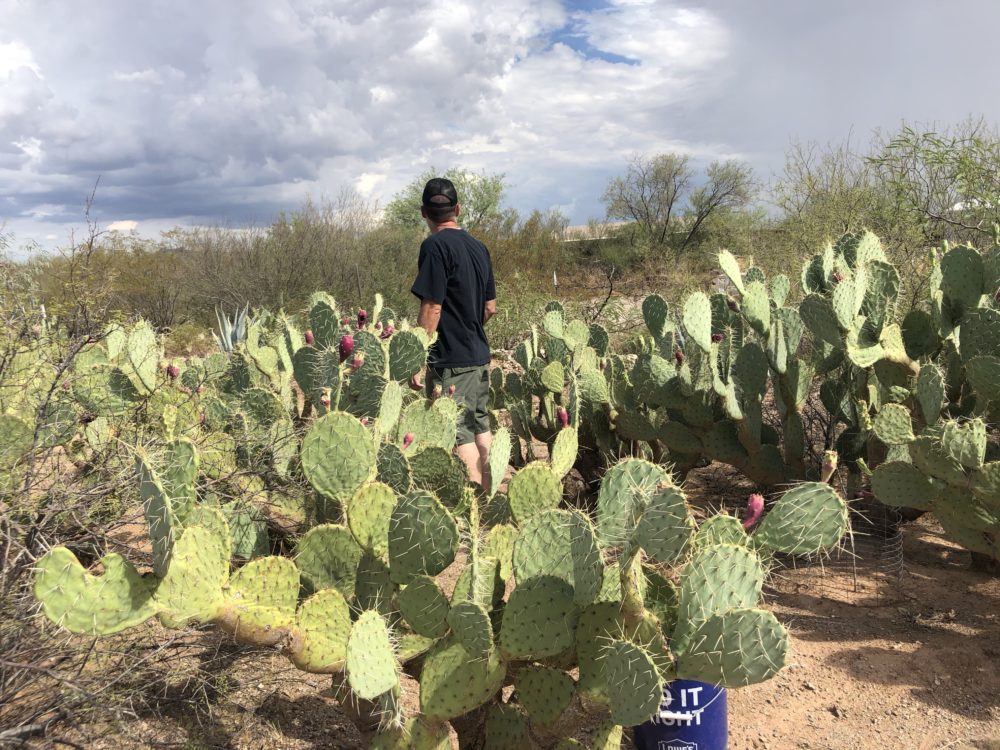 Our prickly pear hedge near Josh’s garden beds is bearing fruit. The animals were starting to eat them, so Josh and I went out on Friday afternoon and picked some of the fruit using tongs. We made sure to leave some fruit for the birds and animals. While we were picking the fruit, there was a thunderstorm south of us, but it fell apart before it made it up to our area.