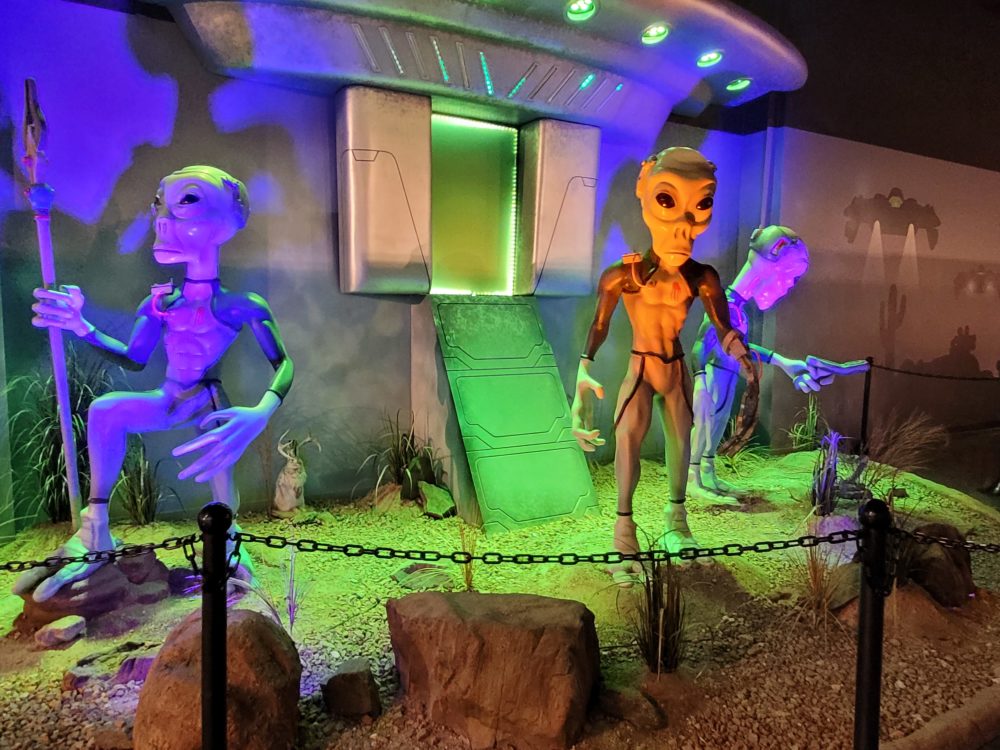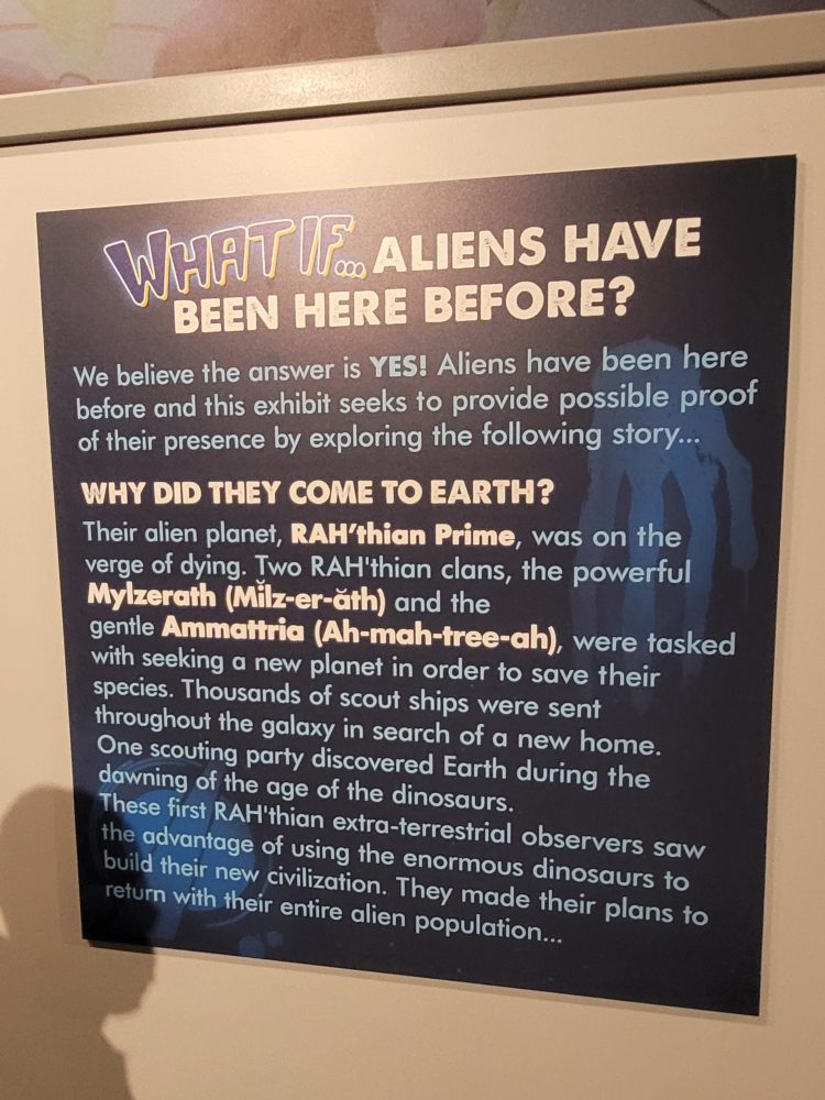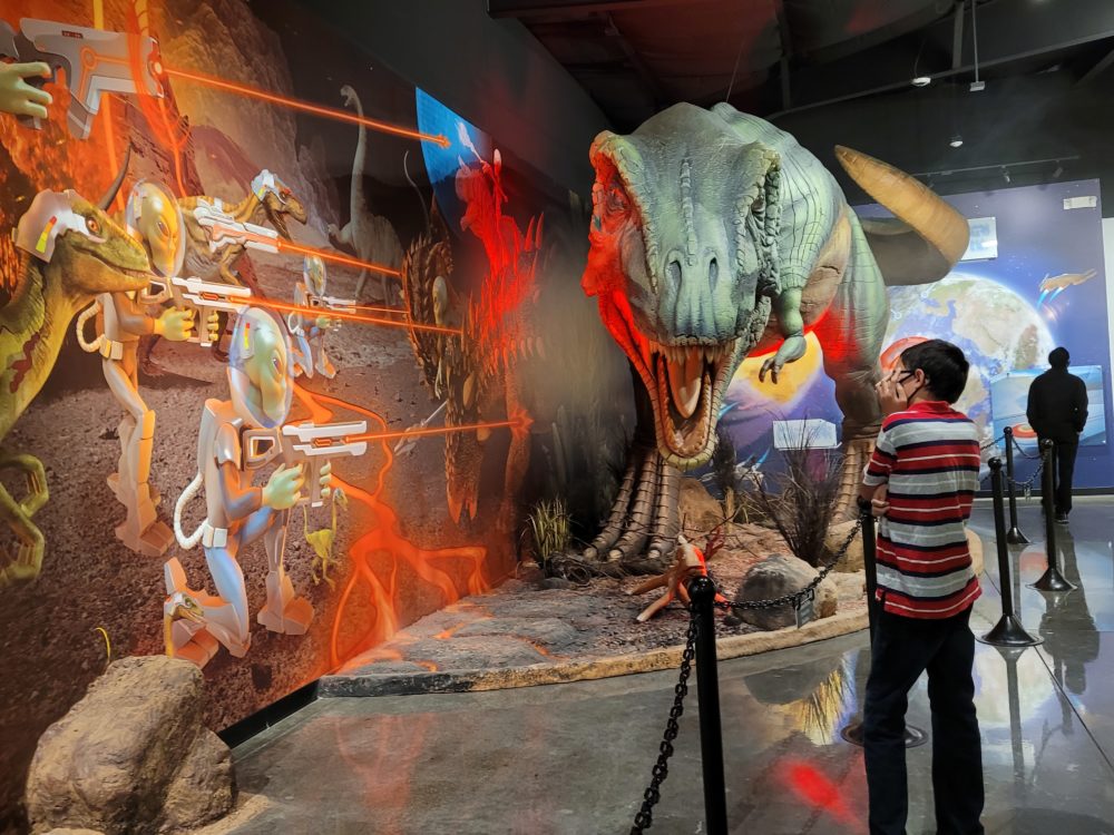 The museum now has an alien versus dinosaur theme. We were greeted upon entering the museum by an alien riding a dinosaur. Fortunately, none of the figures are animatronic, which I’m sure would have scared my youngest, who is 3 years old.