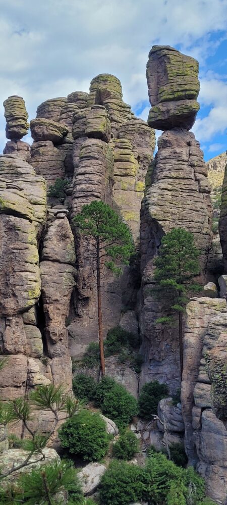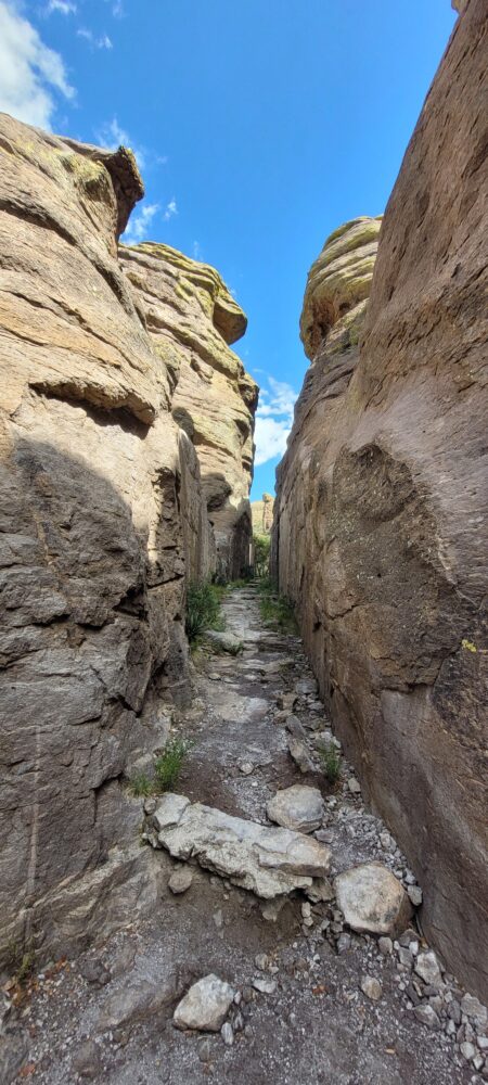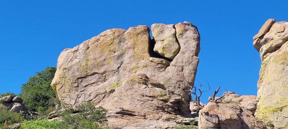 Chiricahua National Monument is a 12,000 acre “wonderland of rocks” located 35 miles southeast of Willcox, Arizona. If you’ve ever driven the I-10 and seen the billboards for The Thing, Chiricahua National Monument is about 40 miles straight east of The Thing. There is no entrance fee to the park. There is currently construction on Arizona State Route 181 going to the park from the 186 which means a bit of a rough road for 4 miles.