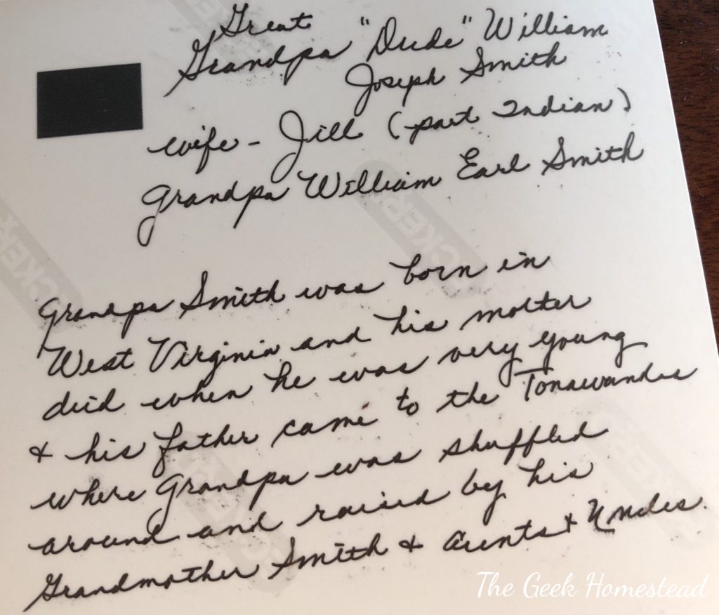 Family history said that she was part Indian, and died when my great-grandfather ( William Earl Smith) was very young. William Earl was then abandoned by his father William Joseph Smith soon after her death. William Earl ended up being raised by some of his Smith relatives. He didn’t know much about his mother, so little was passed on.