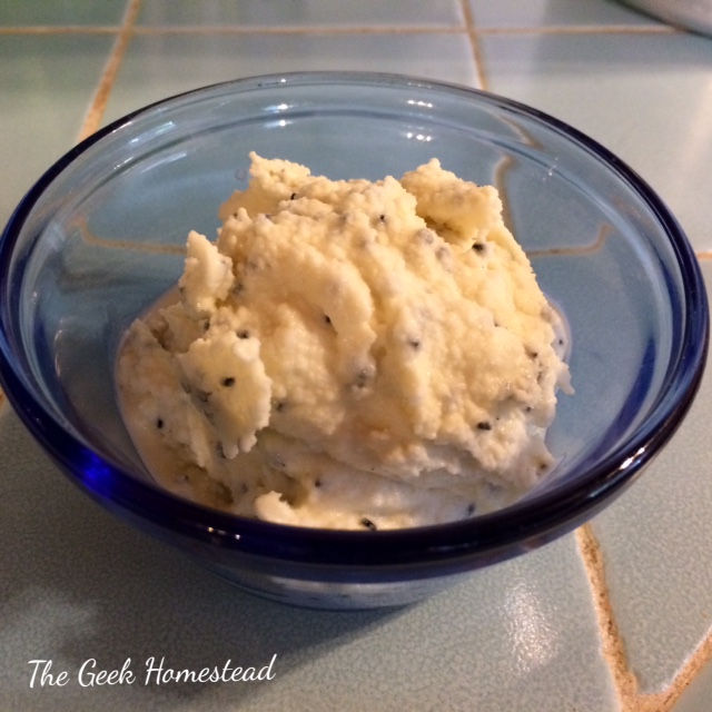 Overall, I think the ice cream tasted pretty good. Only one of our five children liked it, but that didn’t surprise me. There are many seeds in this ice cream, and I think that automatically turned them off before they tried it. The limes do add a tartness to the ice cream, so you could remove them if you do not like tart flavors. Even with the honey, this wasn’t a sweet ice cream. You may want to add more sweetener to it if you want it to be sweet.